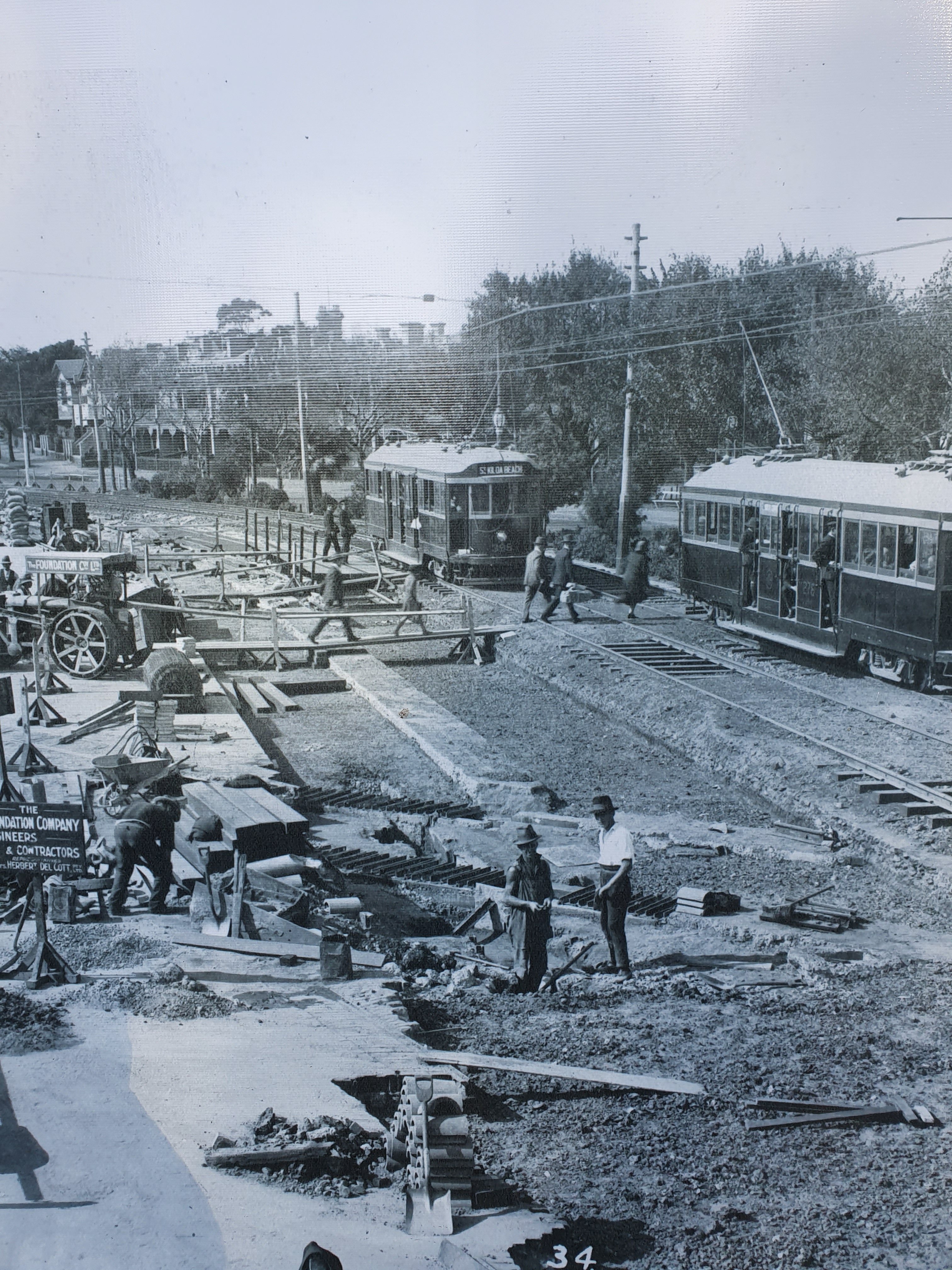 BTW – This photo of St Kilda Rd tram works is courtesy of the State Library. There are more fabulous photos over near the Cobbers Statue in the Shrine grounds.
