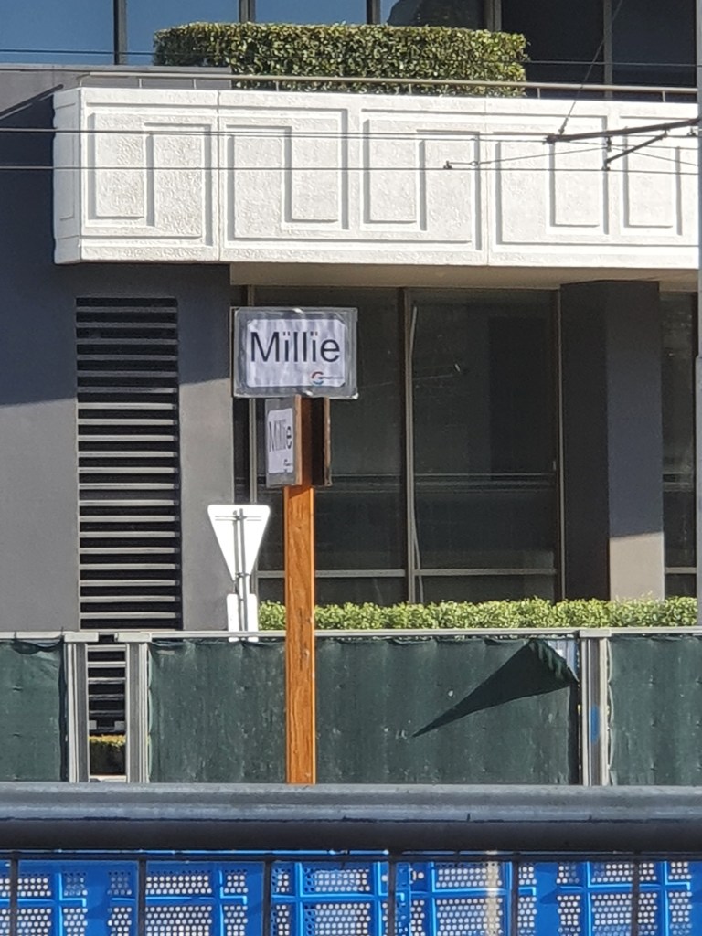 At the moment she is almost to Bowen Lane. She is named after Millie Peacock the first woman elected to the Victorian Parliament. More on that Millie here