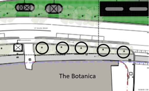 The current plan has a bike hoop in front of 402 St Kilda Rd which we said made no sense. There are bike hoops outside 412 St Kilda Rd, riders to our building can leave their bikes in our carpark. We strongly pushed for the bike hoops to be relocated to the commercial building at 390 St Kilda Rd.