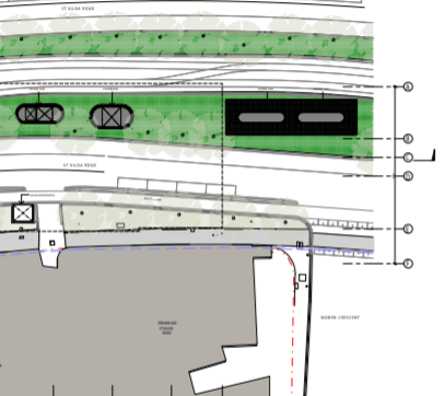 The bad news is that the two vents have now been spread. We were not permitted to have the current equivalent diagrams but each structure is about 12.5 metres long and 6.25 metres high. A gap of 17.5 metres will be between the two units and the southernmost unit will be in front of 412 St Kilda Rd (Old Police Building). The reason for the change was to increase noise dampening and increase air intake.