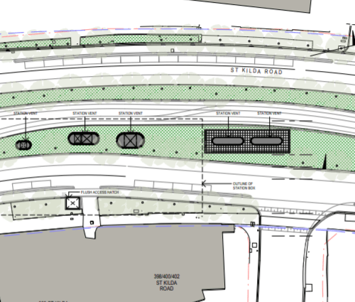 There have always been some vents in the middle of St Kilda Rd, in front of 390 St Kilda Rd. These remain but have been made slightly smaller.
