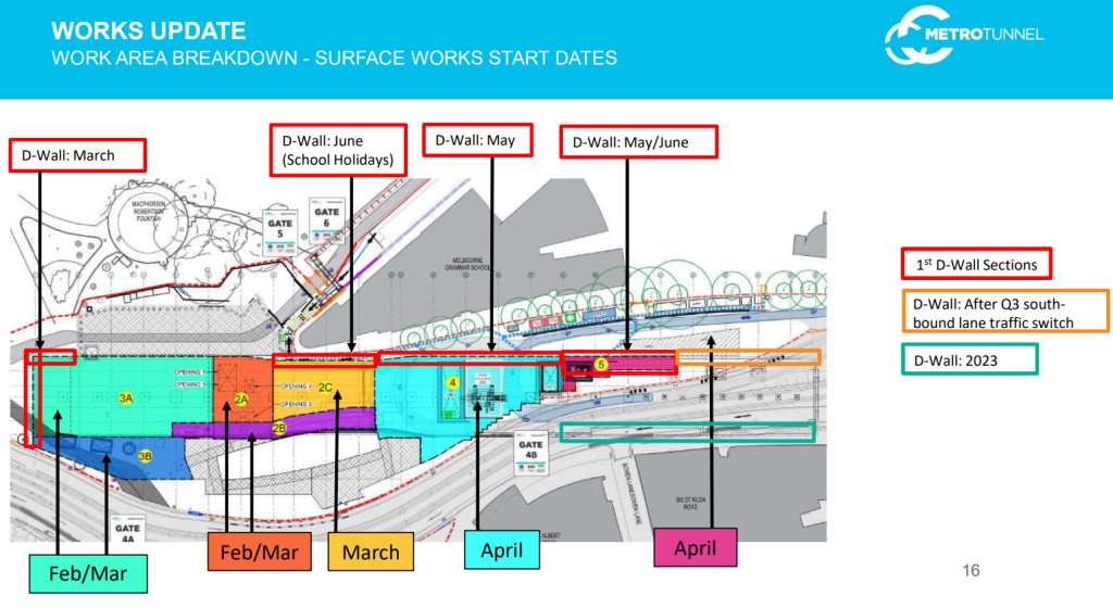 It will be done in stages starting this month. Some stages at our end and directly in front of us cannot be done until the tram and road is moved to its final alignment. This means late this year and early next year.