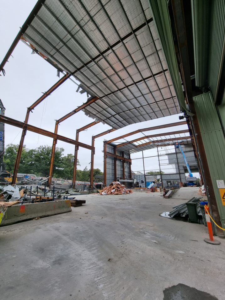You will have seen the view across the station box has changed a lot since last week, with almost all of the shed panels now removed. Work will continue on dismantling the acoustic shed frame next week. We’ve included a picture from earlier this week during the shed demolition. This photo was taken from where the northern shed door used to be, and is facing towards the southern end of the station box.