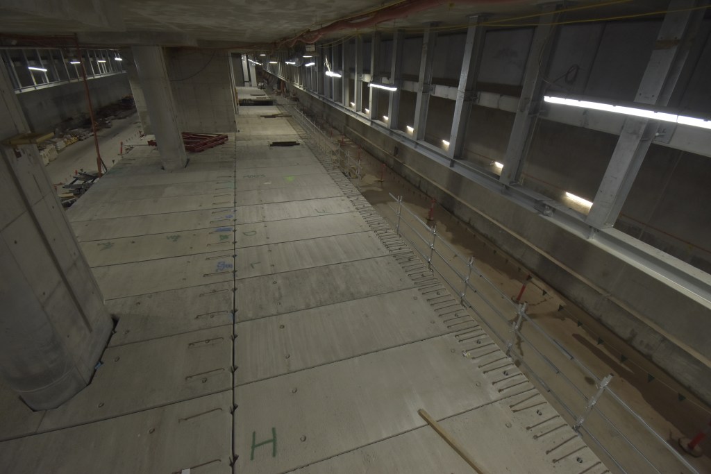 Today we’ve included a photo of the progress of the platform construction down at the base of the station box. The team are making good progress as they construct the platform from south to north. Once the full platform is constructed, a capping slab of concrete is poured.