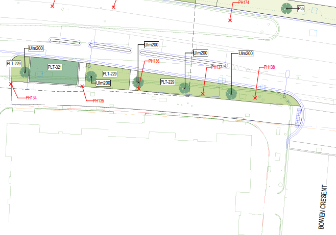 Something that intrigued me was that it seemed like we have ‘garden beds’ between our street trees out the front. This is the final design – so a couple of years away. This is the “picture”