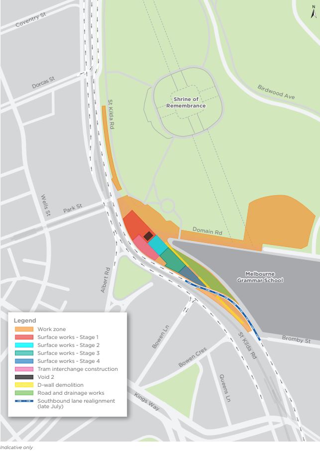 The works on Park Street have been pushed back until the 1st week of August. We’re expecting that these may be a little more disruptive, with the left turn from St Kilda Road into Park Street closed – and a pedestrian detour required during excavation. We’ll have some more detailed information about these works in next week’s update – and we’ll be sending out a specific construction notification to go with it.