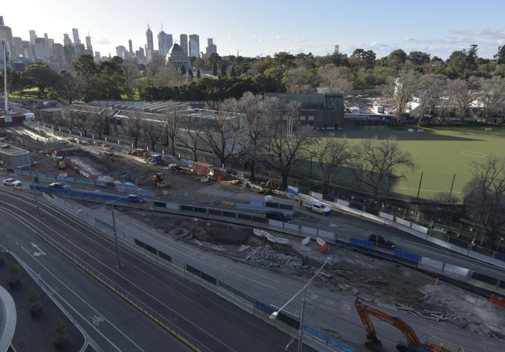 Moving entirely up the other end of the site to the north, you may have noticed that our the site sheds on St Kilda Road adjacent to the shrine grounds have now gone. The team in this area are starting the work to prepare this road to come back into commission and act as the new southbound lane, which will continue through the existing site along the edge of Melbourne Grammar School.