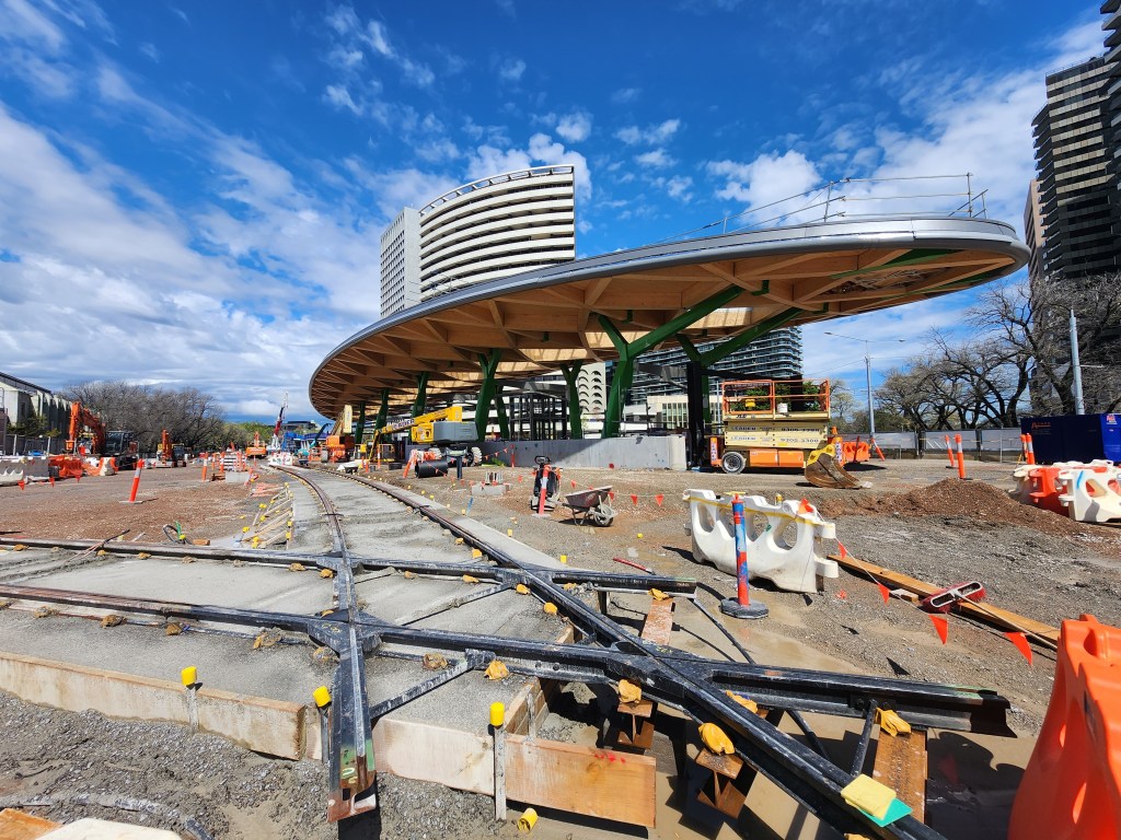 Also through site, the team will progressively lay sleepers and measures of tram track that will form the new tram alignment. Attached is an image of some of the track progress on a particularly nice day this week.