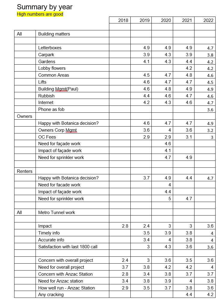 - A few people asked about the back wall and the trellis that is on the wall. It seems that we will need scaffolding to fix the issue and that makes it quite difficult. However, we will also need scaffolding when we repaint the building – so we will do both at the same time. The timing is not locked in but currently scheduled for about 12 months’ time and the plan is to paint the back of the building first.