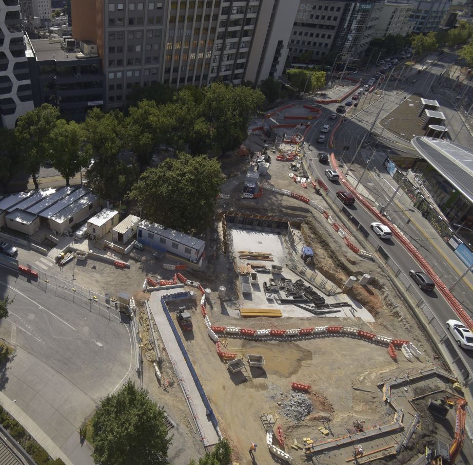 Down at the southern end of site, formwork is up and running for the first of the chiller plant structures, the blinding layer for the second location further to the south is also poured and planning is underway for the installation of the precast sections of concrete that will form the walls of the chiller plant. We have also commenced work on the inner road lane of St Kilda between Bromby Street and Toorak Road (southbound), once the inner lane is constructed, we’ll shift traffic onto this inner lane and start to build the separated bike lanes and kerb along this section.
