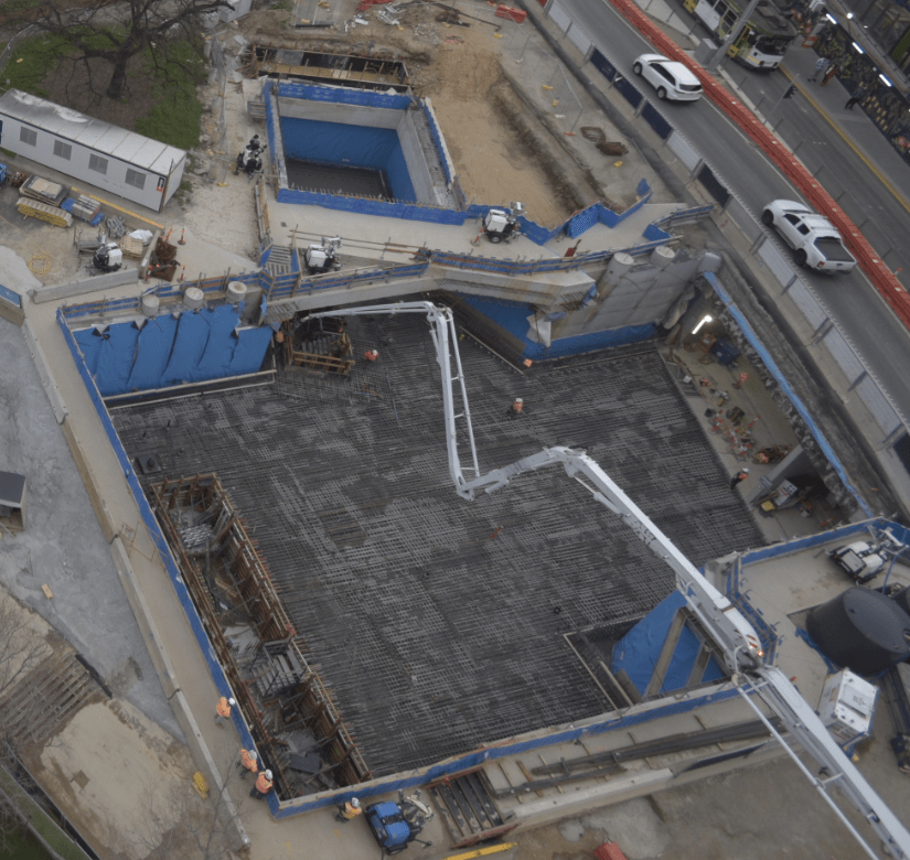 Today’s main show is the huge concrete pour taking place at the Albert Road Station Entrance. Everything is ticking along well there at the moment with the pour to wrap up at about 6pm. We will have crews into the night (in the entrance) putting in the final touches.