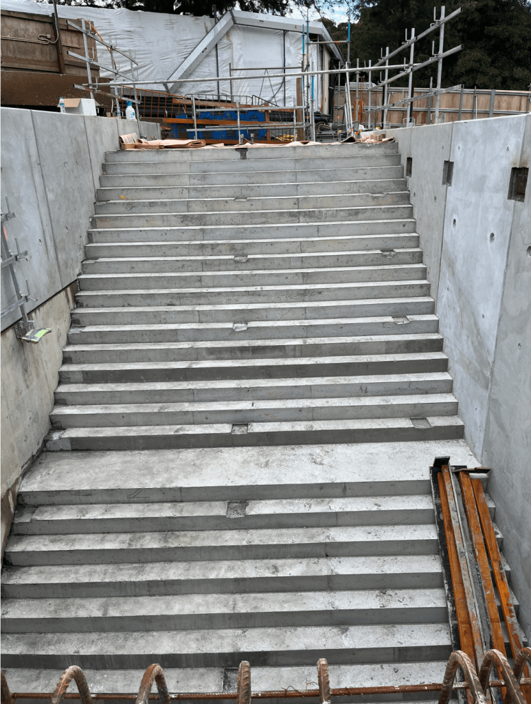 Another big milestone this week with the completion of the stairs leading up from the concourse level to the edge of the Shrine of Remembrance and Domain Road. It may be hard to associate that side of the job with Domain Road as it’s been closed off for so long – but the legacy design reinstates the Domain Road connection to St Kilda Road and these stairs sit just adjacent to the reinstated roadway and tram line. This week we’ve included before and after photos of the completed stairs.