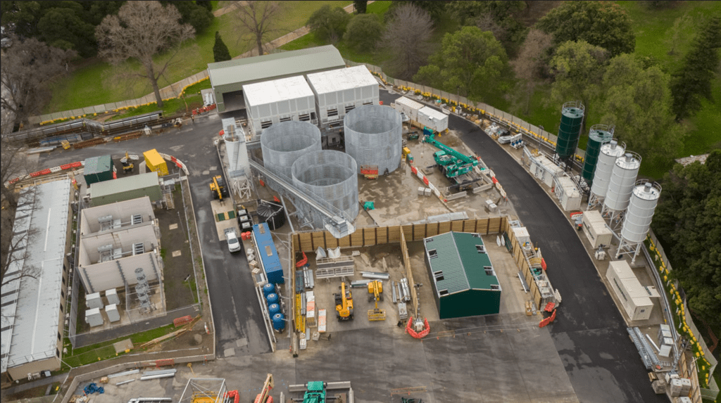 With Edmund Herring Oval demolition works commencing this week, today we’ve featured a flashback to 2019, when the site was being prepared to handle the spoil removed from the tunnel boring machines. (To the left of the photo is Domain Road)