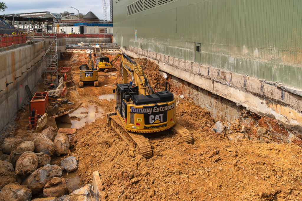 With the Shrine entrance making great progress, todays flashback takes us way back to October 2020, when we were excavating down to the concourse level for the Shrine entrance, adjacent to the old acoustic shed. Rest assured the door you can see in the side of the shed was sealed off from the inside!